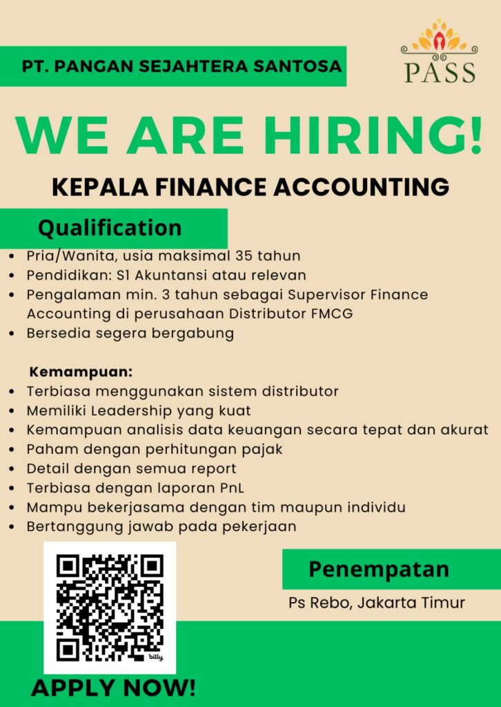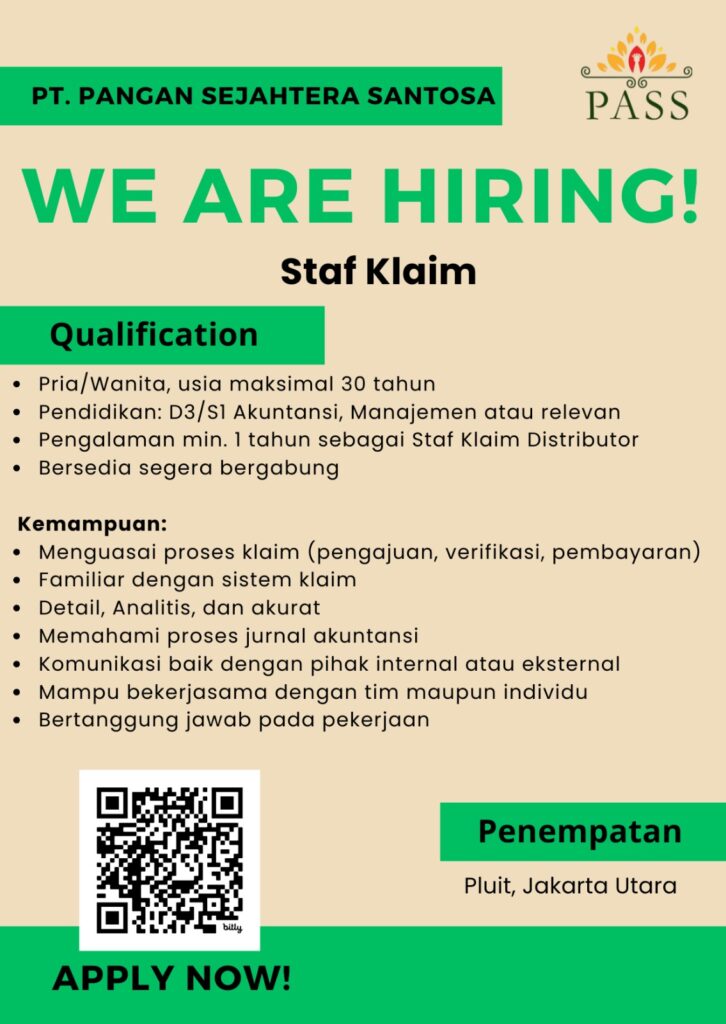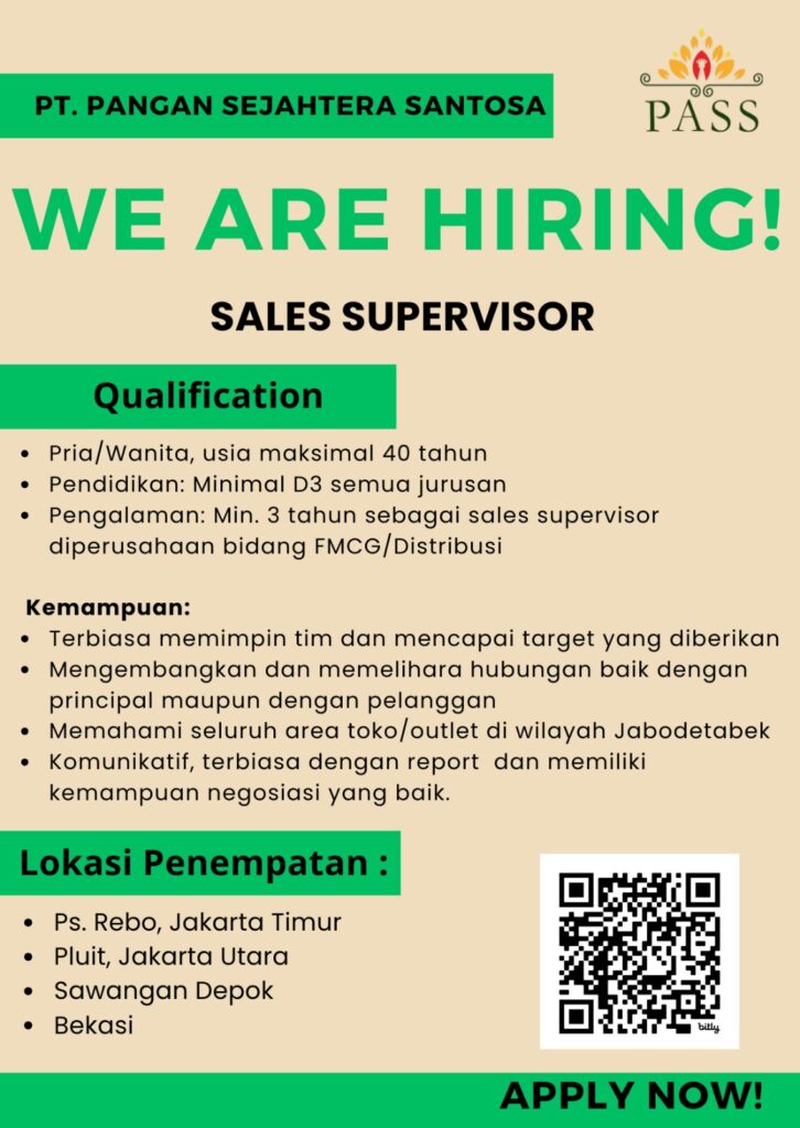Bergabunglah bersama kami menjadi bagian dari karyawan PT Pangan Sejahtera Santosa dengan motivasi serta semangat tinggi. Bersama – sama tumbuh dan berkembang dalam ruang lingkup yang penuh dengan tantangan untuk memberikan pelayanan terbaik.
