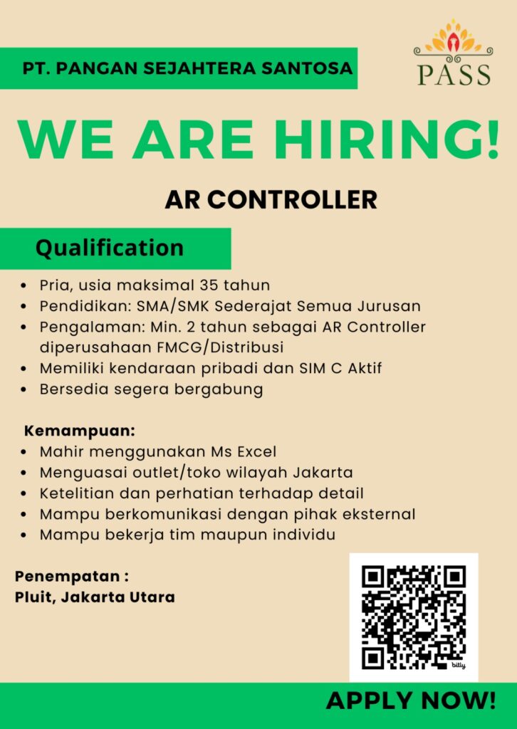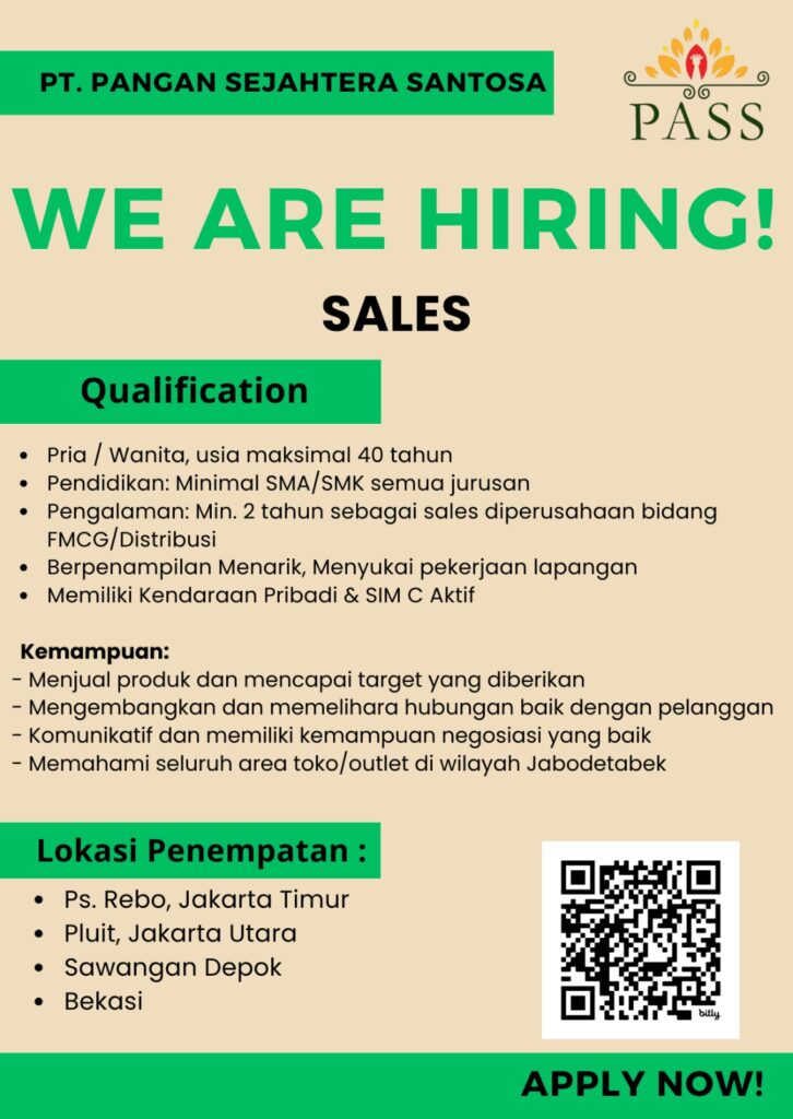 Bergabunglah bersama kami menjadi bagian dari karyawan PT Pangan Sejahtera Santosa dengan motivasi serta semangat tinggi. Bersama – sama tumbuh dan berkembang dalam ruang lingkup yang penuh dengan tantangan untuk memberikan pelayanan terbaik.